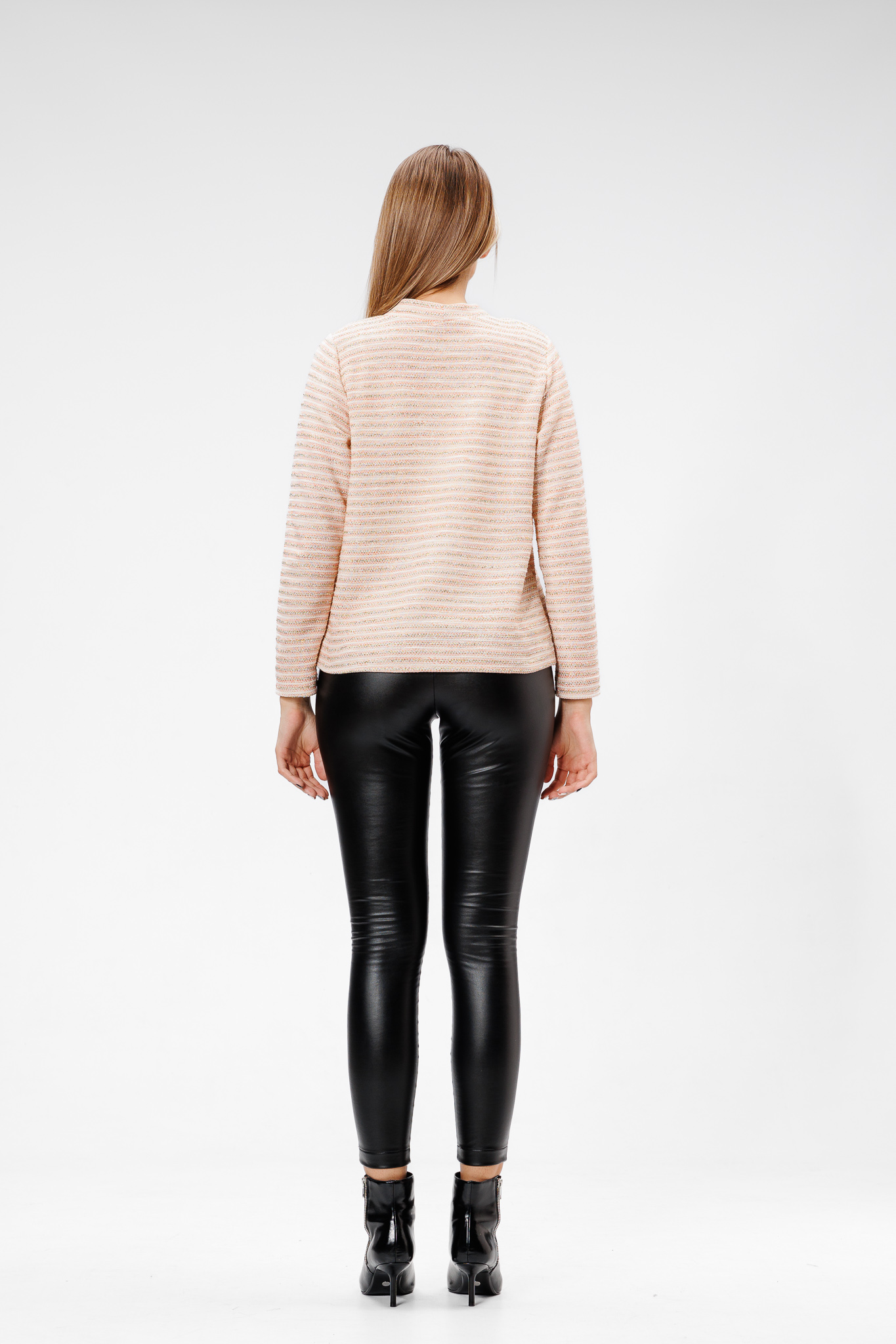 Cardigan dama RVL, roz/dungi, scurt, cu un croi lejer. Cardiganul este casual, in V, cu maneca lunga, inchidere frontala cu nasturi .