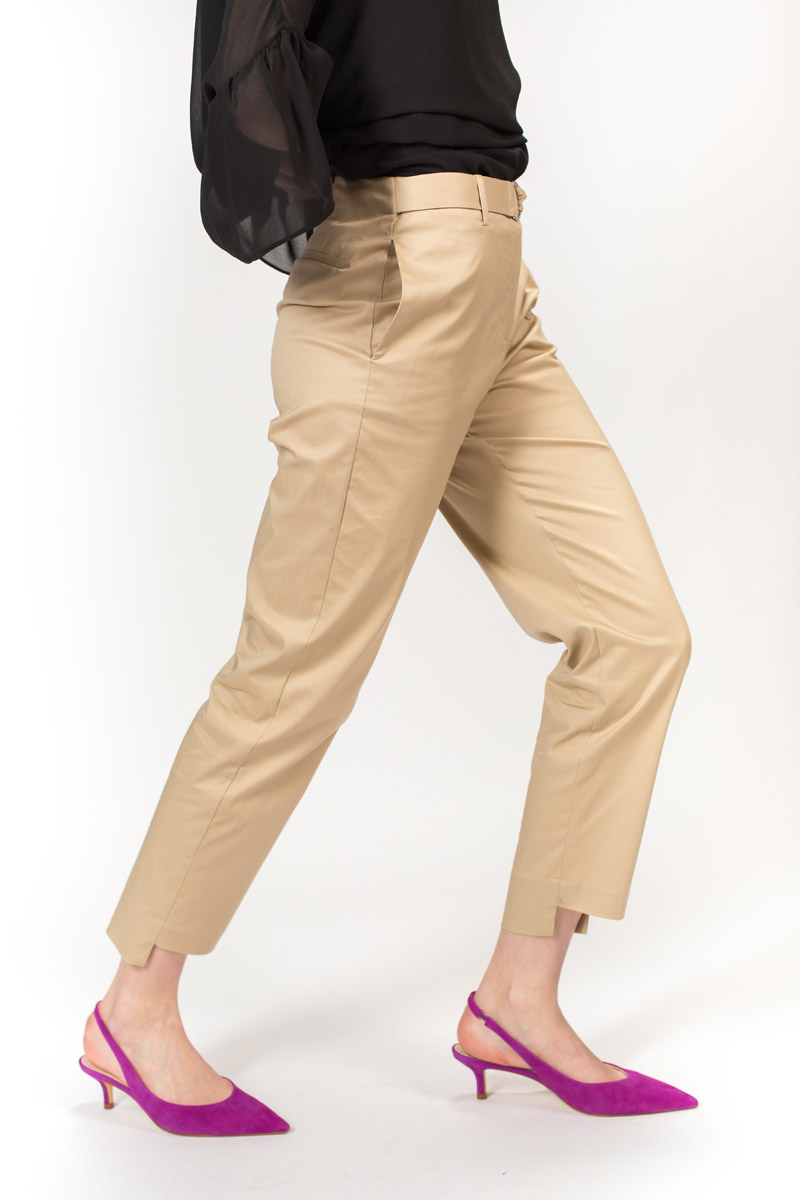Pantalon bej de dama, asimetric. Prezinta doua buzunare laterale.