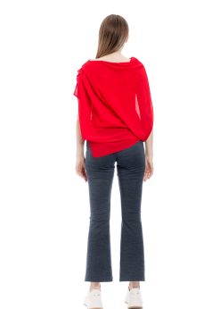 Bluza rosie RVL, eleganta, asimetrica, cu un croi lejer si plii pe umar.