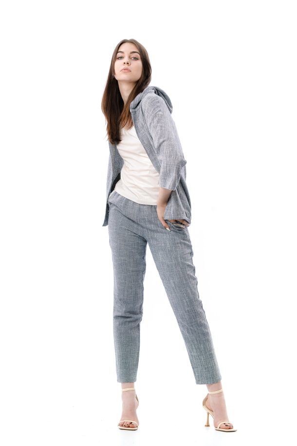 Cardigan dama RVL, gri, casual, cu gluga, maneca 3/4, siret la terminatie si detalii decorative pe spate.
