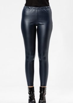 Colanti piele sintetica bleumarin RVL, casual, uni, skinny, cu efect modelator, talie inalta, fara inchidere.