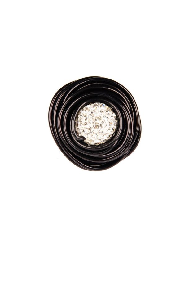 Inel reglabil in forma de cuib negru in mijlocul caruia este asezata o bila decorata cu cristale.