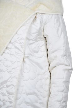 Jachete dama de culoare crem, cu blana ecologica pe interior. Aceste jachete dama au un buzunar aplicat in partea dreapta jos. Pe interior in zona pieptului are un elastic lat care se inchide cu capse ce tine produsul fix pe corp.