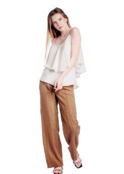 Pantalon din in RVL, casual, lung, lejer, cu elastic in talie, perfect pentru zilele calduroase de vara.