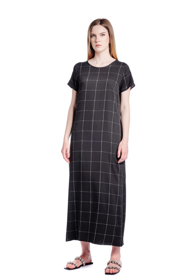 Rochie dama RVL, din viscoza, lunga, casual, cu un croi lejer, maneca scurta si slituri pe laterale.Rochia se poate ajusta in talie cu un cordon si este perfectă pentru zilele călduroase de vară .